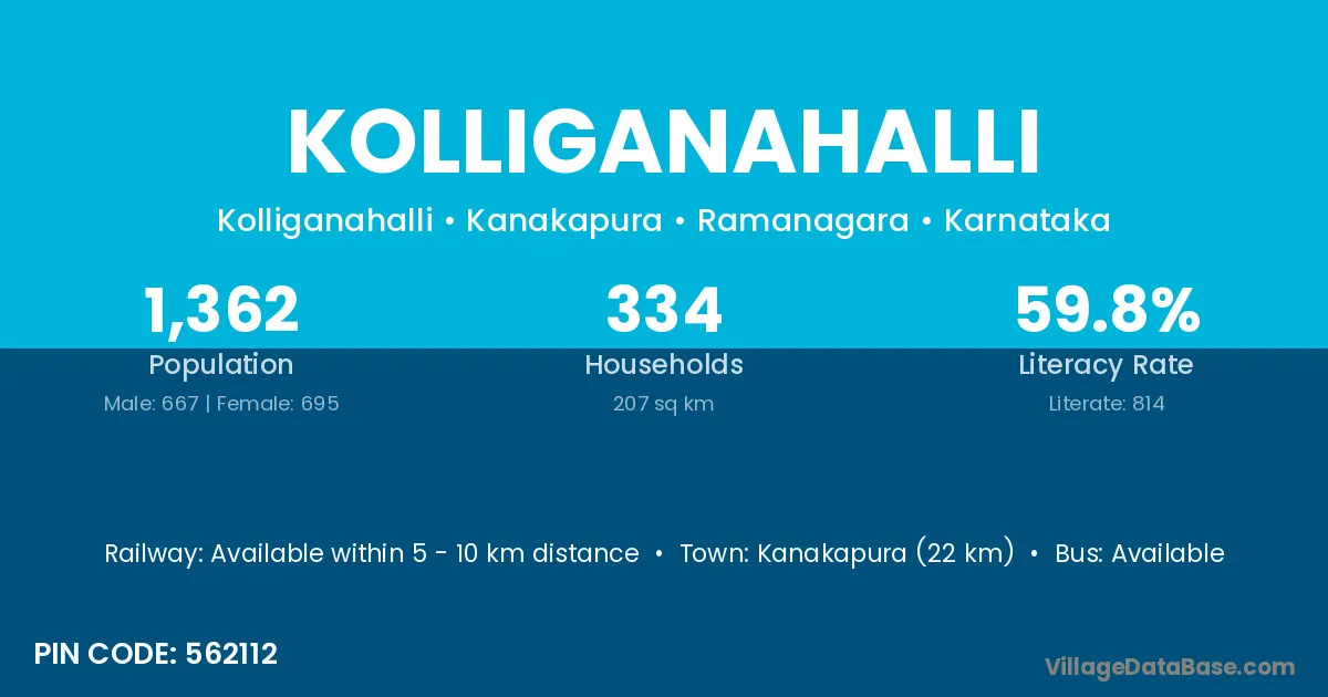 Kolliganahalli village has a total population of 1,362 people, of which 667 are males and 695 are females.