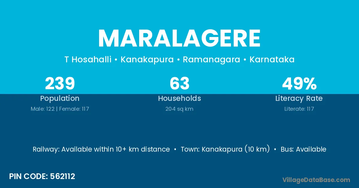 Kanakapura (10 km) is the nearest town to Maralagere village for major economic activities and is located approximately 10 km away.
