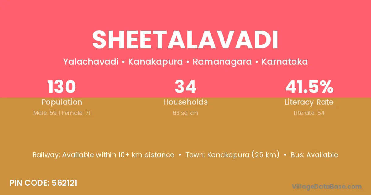 Kanakapura (25 km) is the nearest town to Sheetalavadi village for major economic activities and is located approximately 25 km away.