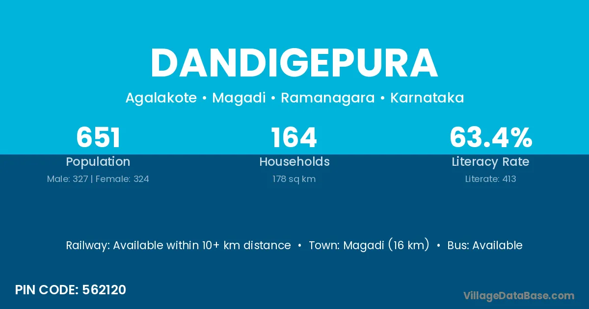 Magadi (16 km) is the nearest town to Dandigepura village for major economic activities and is located approximately 16 km away.