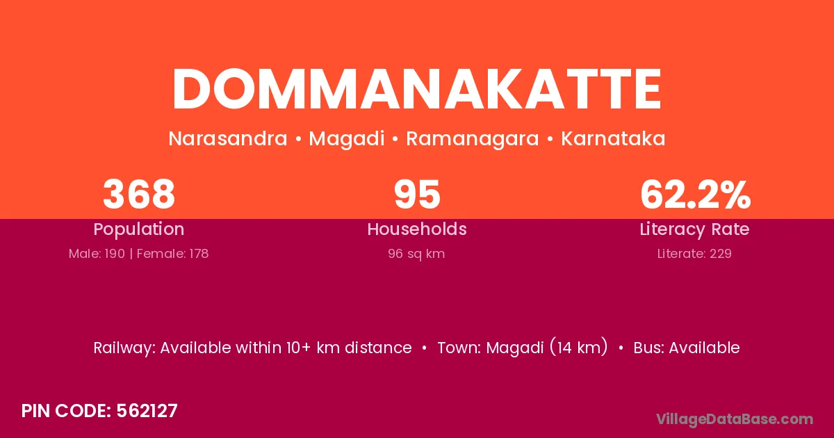 Magadi (14 km) is the nearest town to Dommanakatte village for major economic activities and is located approximately 14 km away.