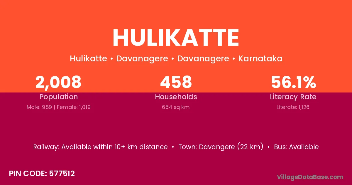 Hulikatte village has a total population of 536 people, of which 291 are males and 245 are females.