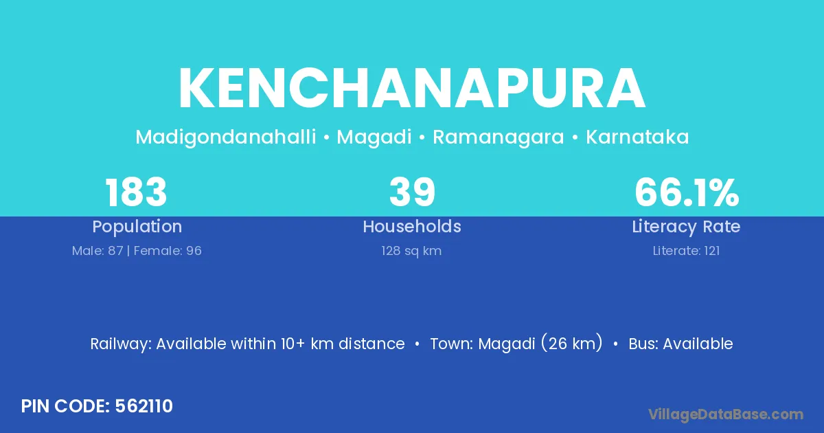 Magadi (26 km) is the nearest town to Kenchanapura village for major economic activities and is located approximately 26 km away.