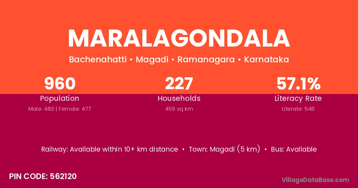 Magadi (5 km) is the nearest town to Maralagondala village for major economic activities and is located approximately 5 km away.
