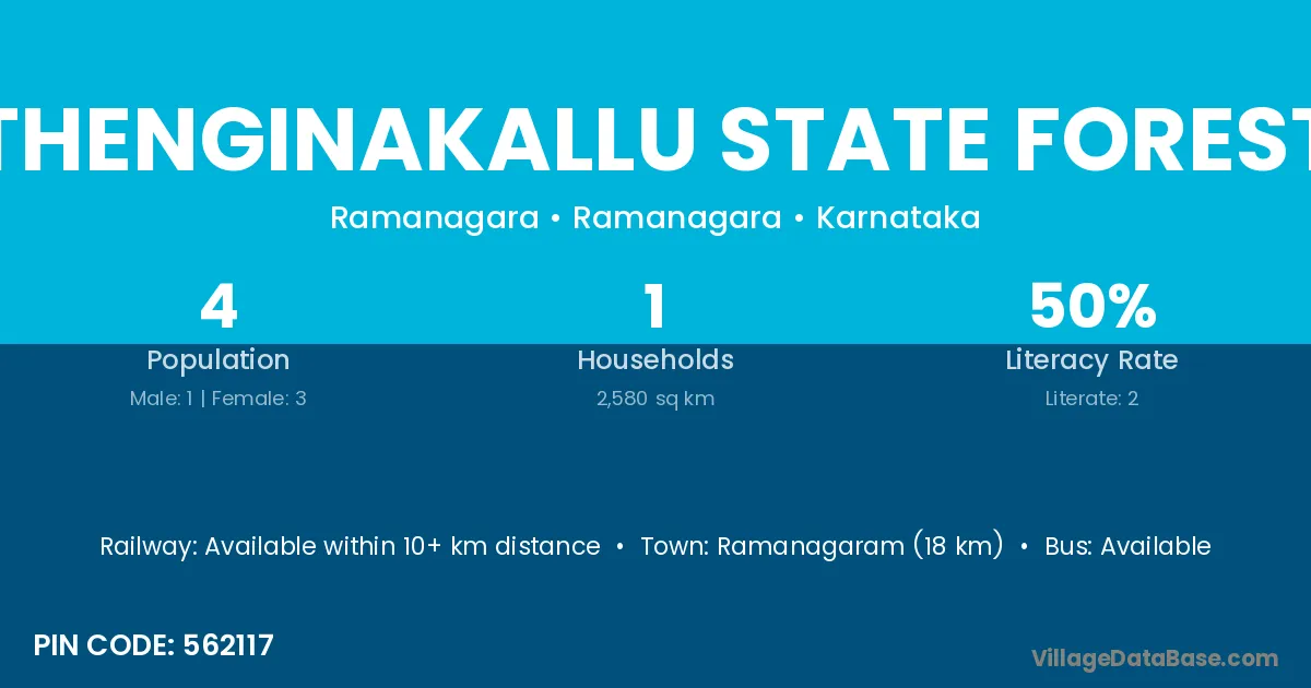 Ramanagaram (18 km) is the nearest town to Thenginakallu State Forest village for major economic activities and is located approximately 18 km away.