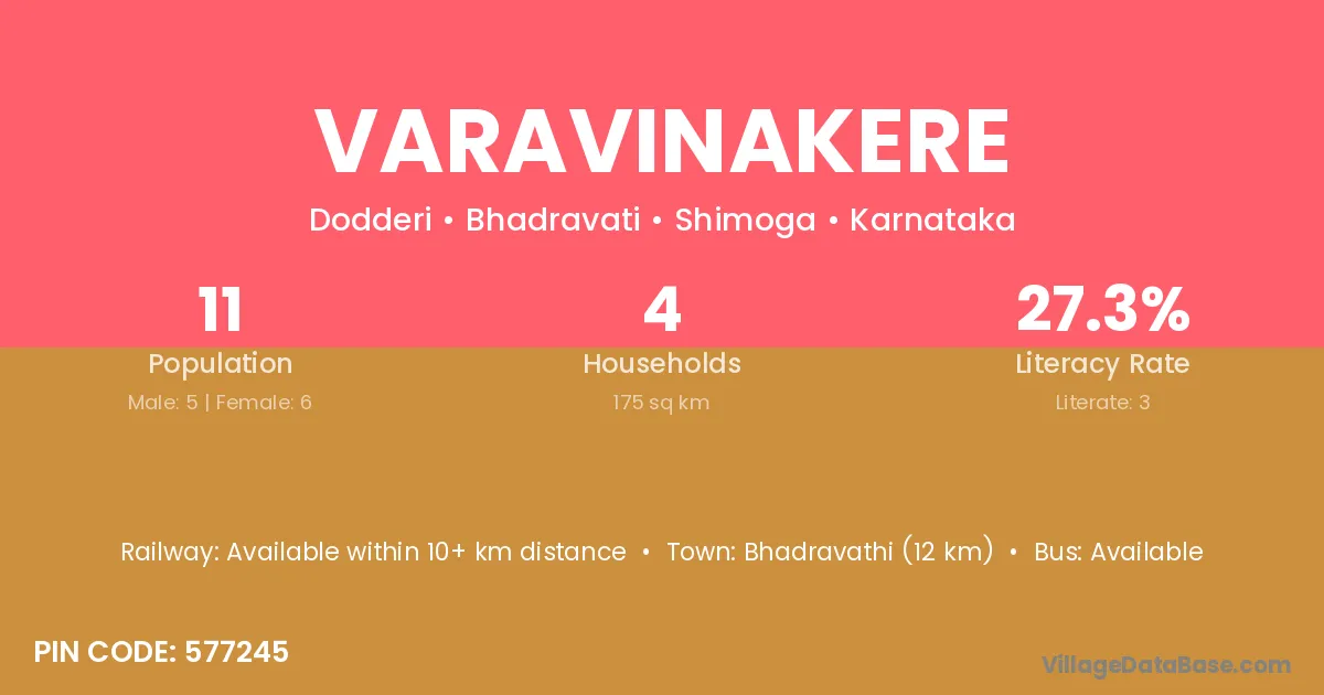 Bhadravathi (12 km) is the nearest town to Varavinakere village for major economic activities and is located approximately 12 km away.
