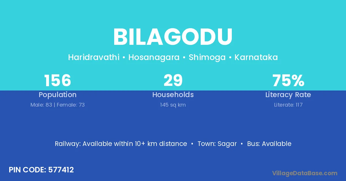 Bilagodu village has a total population of 156 people, of which 83 are males and 73 are females.