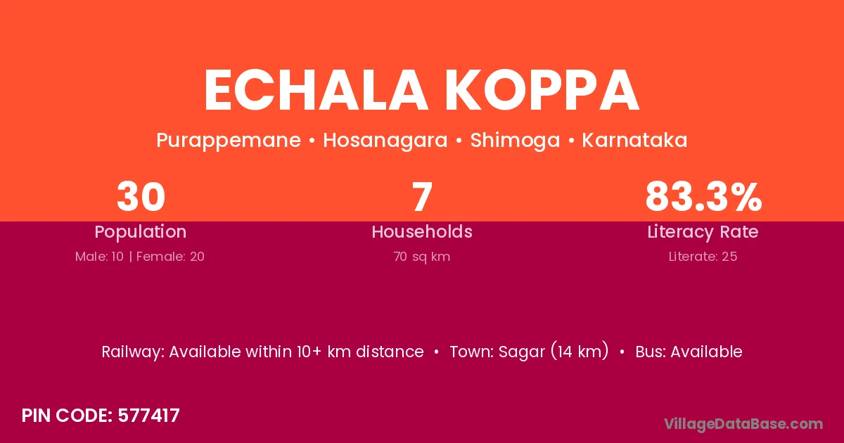 Sagar (14 km) is the nearest town to Echala Koppa village for major economic activities and is located approximately 14 km away.