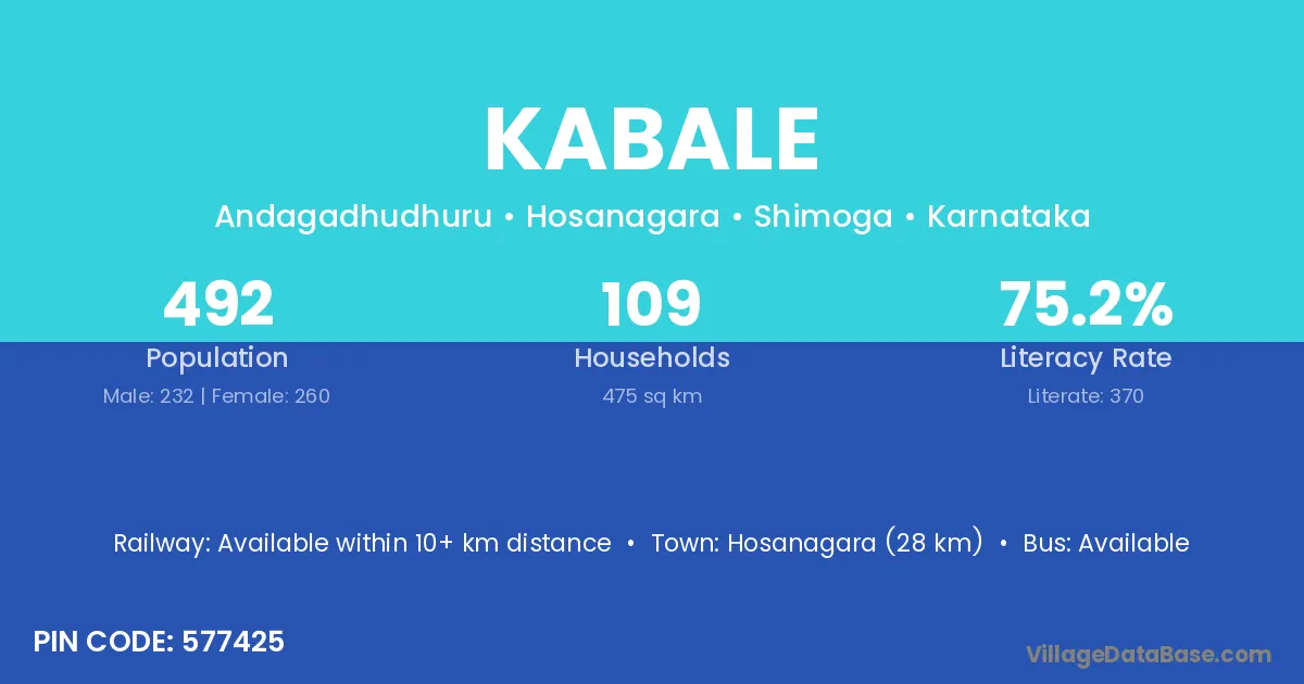 Hosanagara (28 km) is the nearest town to Kabale village for major economic activities and is located approximately 28 km away.