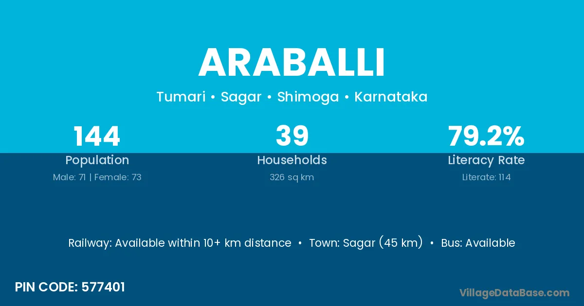 Sagar (45 km) is the nearest town to Araballi village for major economic activities and is located approximately 45 km away.
