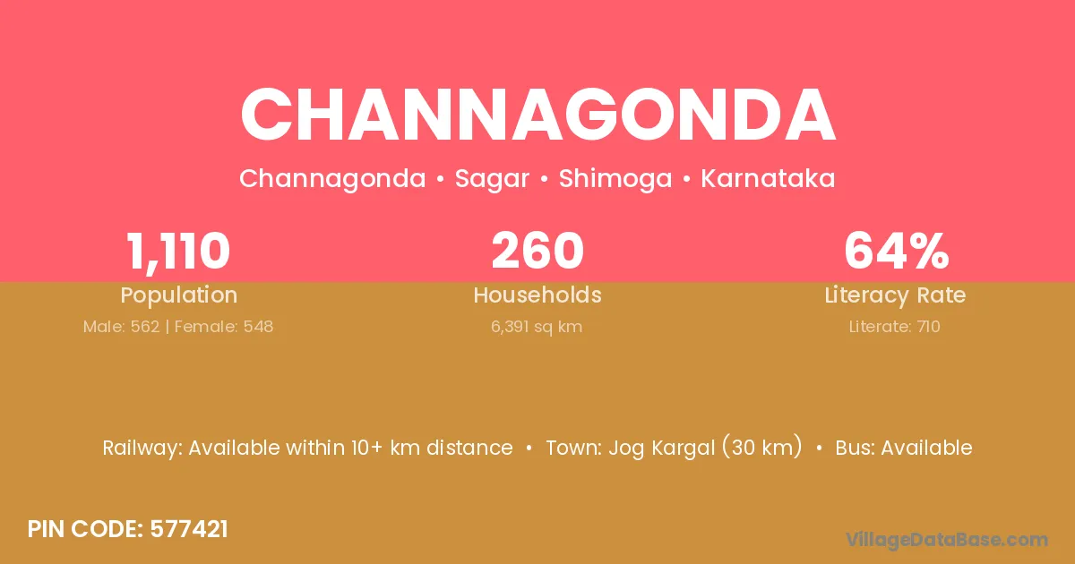 Jog Kargal (30 km) is the nearest town to Channagonda village for major economic activities and is located approximately 30 km away.