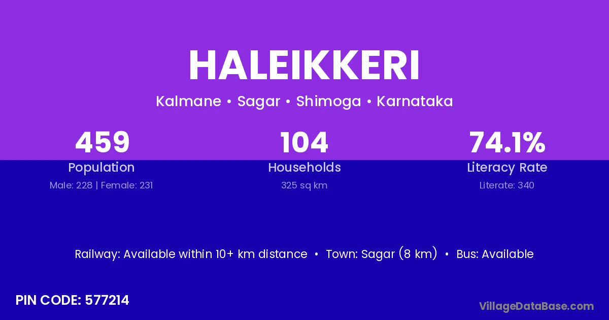 Sagar (8 km) is the nearest town to Haleikkeri village for major economic activities and is located approximately 8 km away.