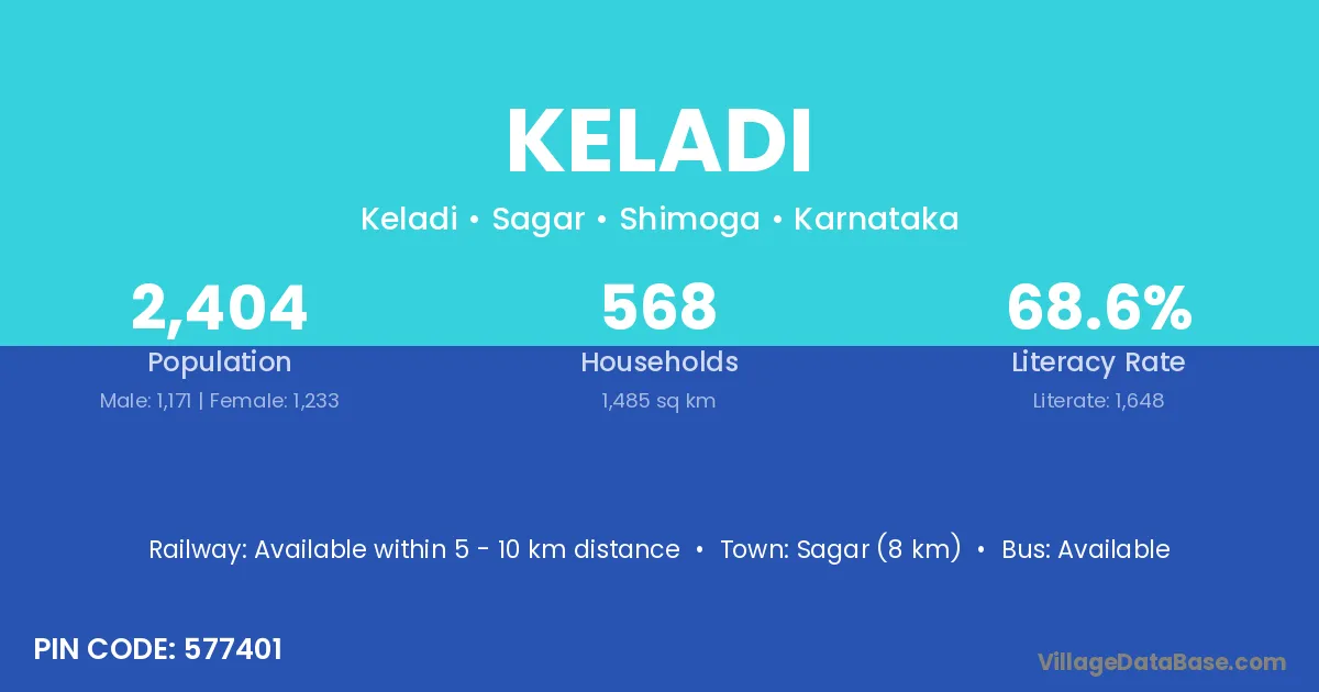 Sagar (8 km) is the nearest town to Keladi village for major economic activities and is located approximately 8 km away.