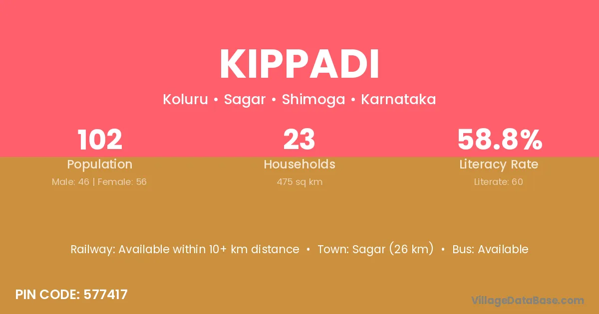 Sagar (26 km) is the nearest town to Kippadi village for major economic activities and is located approximately 26 km away.