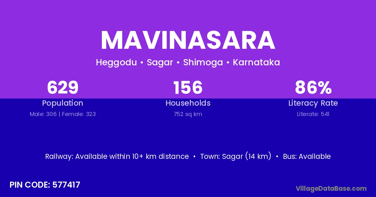 Sagar (14 km) is the nearest town to Mavinasara village for major economic activities and is located approximately 14 km away.
