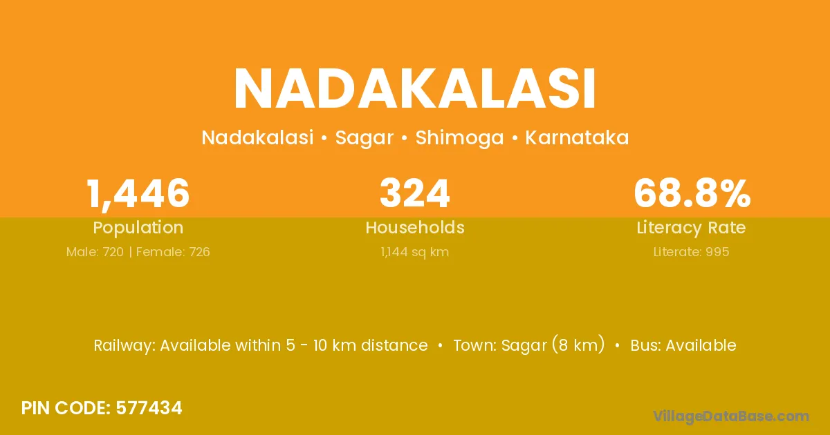 Sagar (8 km) is the nearest town to Nadakalasi village for major economic activities and is located approximately 8 km away.
