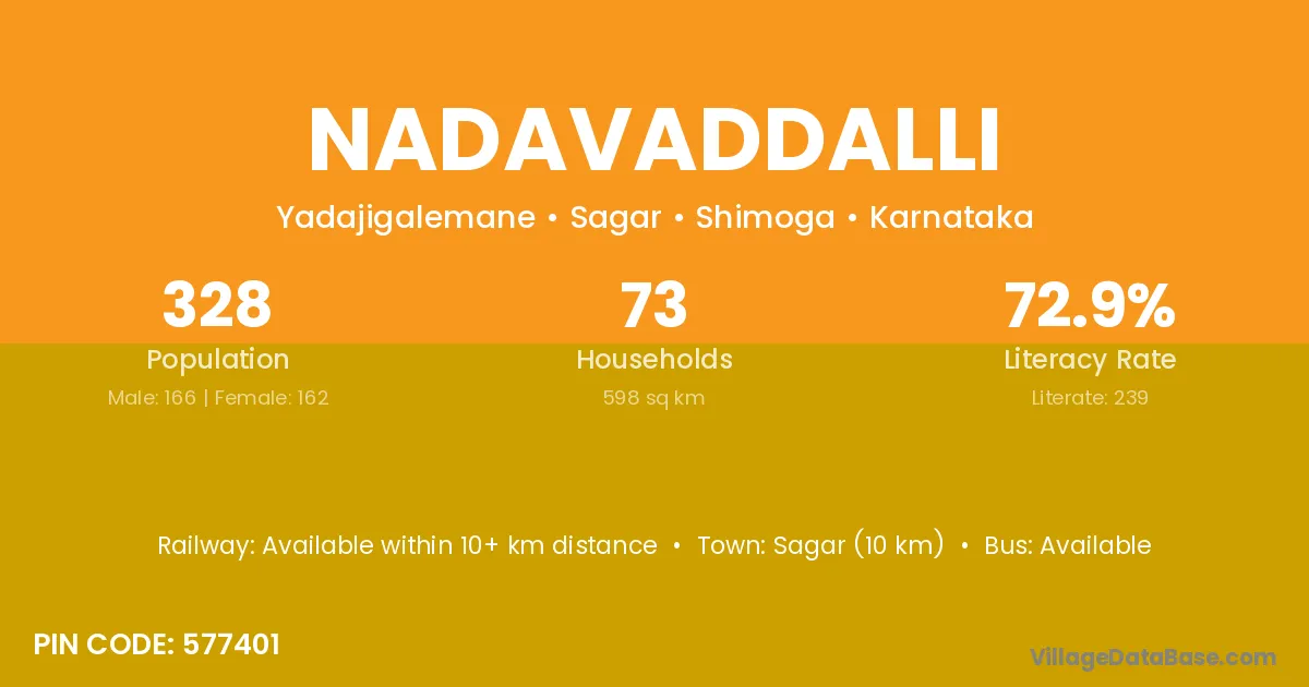Sagar (10 km) is the nearest town to Nadavaddalli village for major economic activities and is located approximately 10 km away.
