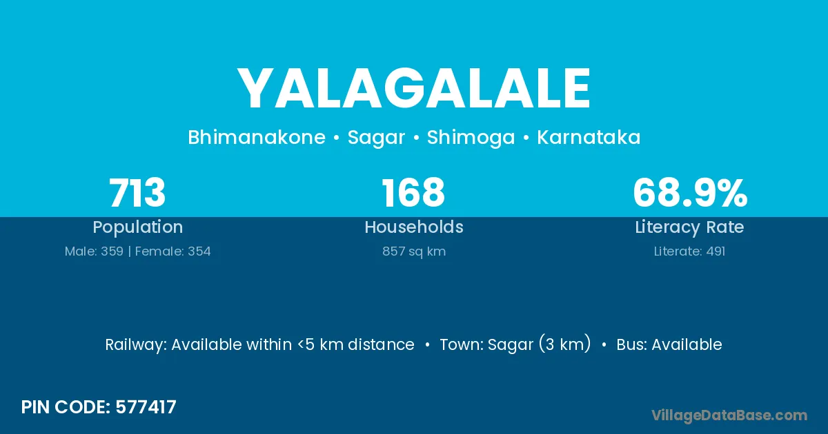 Sagar (3 km) is the nearest town to Yalagalale village for major economic activities and is located approximately 3 km away.