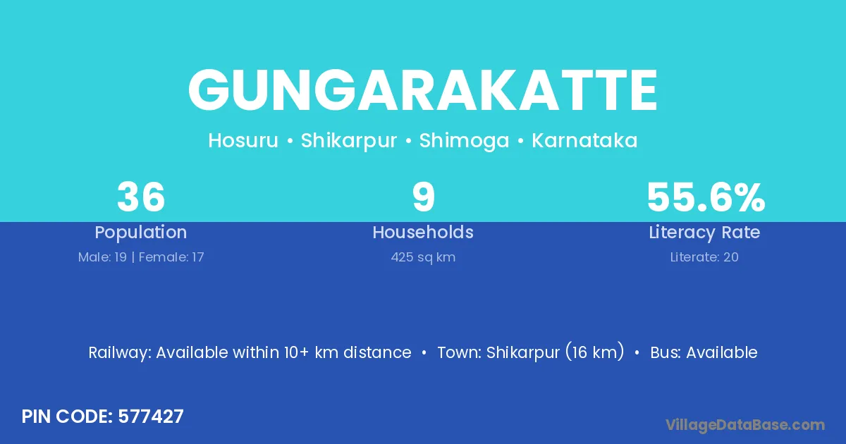 Shikarpur (16 km) is the nearest town to Gungarakatte village for major economic activities and is located approximately 16 km away.