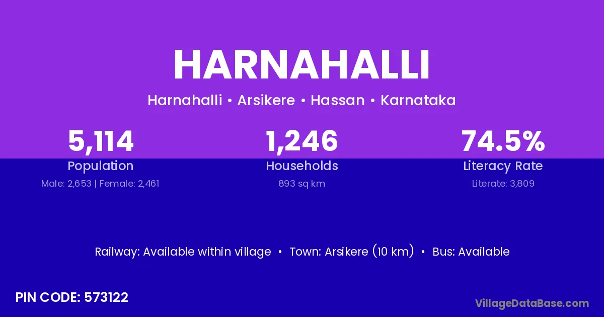 Harnahalli village has a total population of 1,016 people, of which 523 are males and 493 are females.