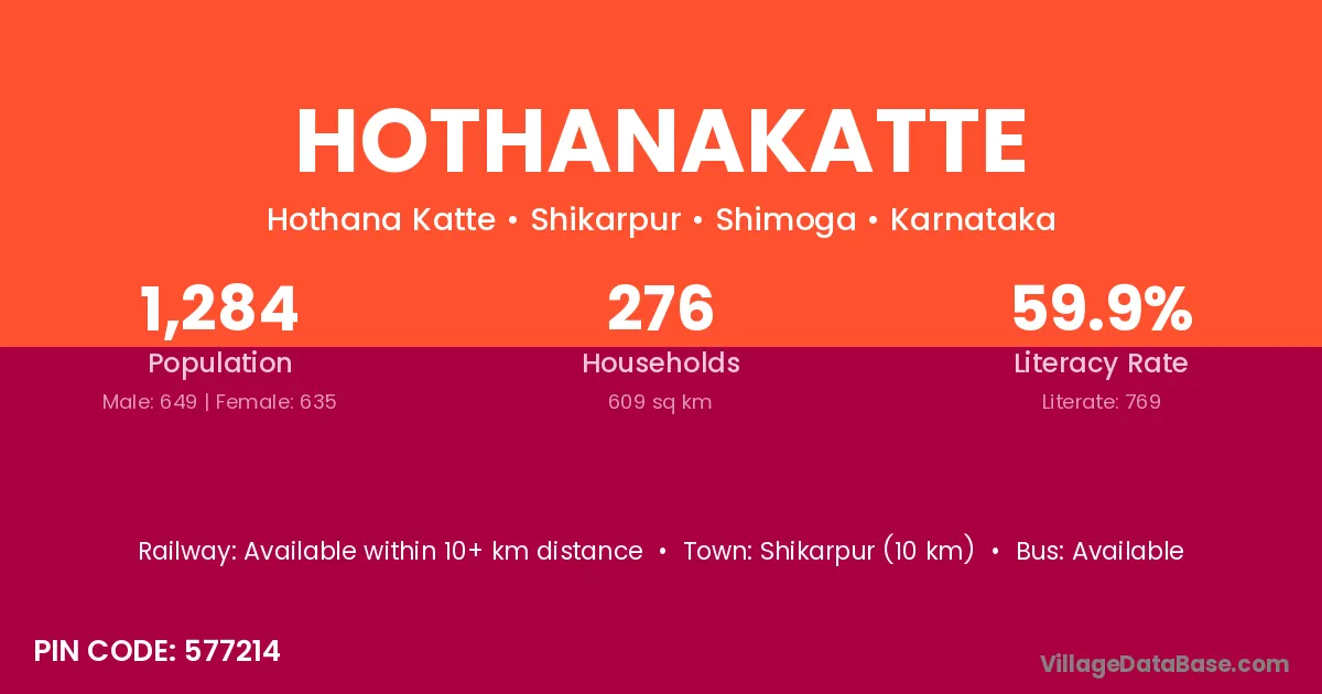 Hothanakatte village has a total population of 1,284 people, of which 649 are males and 635 are females.