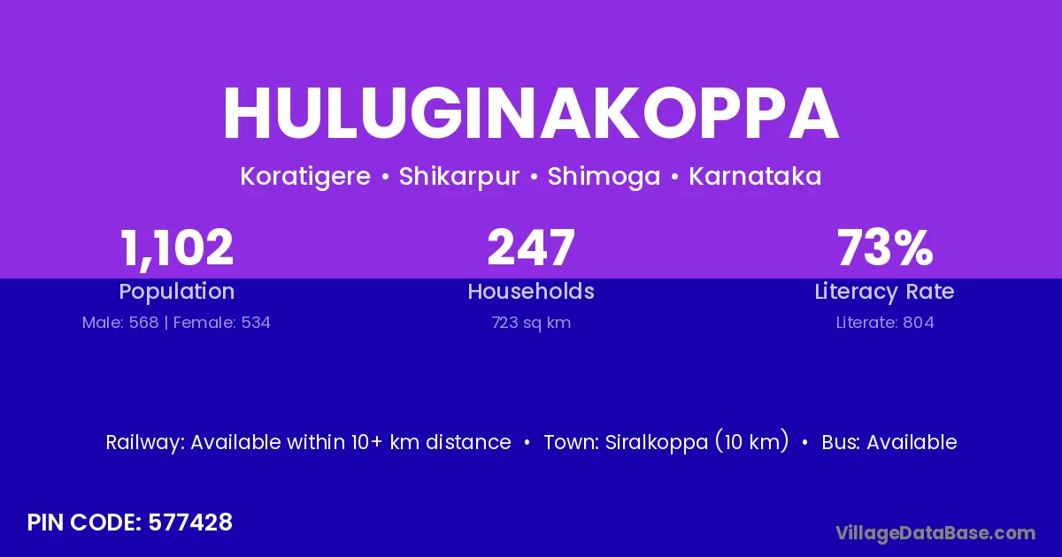 Siralkoppa (10 km) is the nearest town to Huluginakoppa village for major economic activities and is located approximately 10 km away.