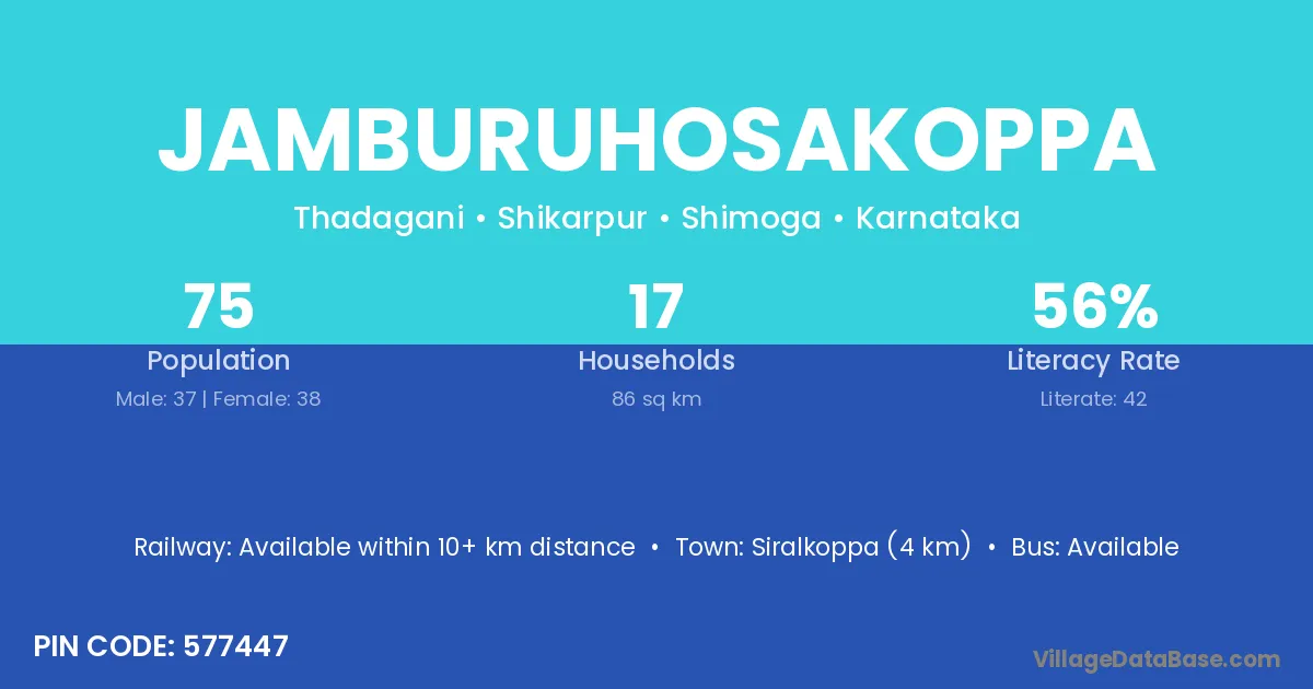 Siralkoppa (4 km) is the nearest town to Jamburuhosakoppa village for major economic activities and is located approximately 4 km away.