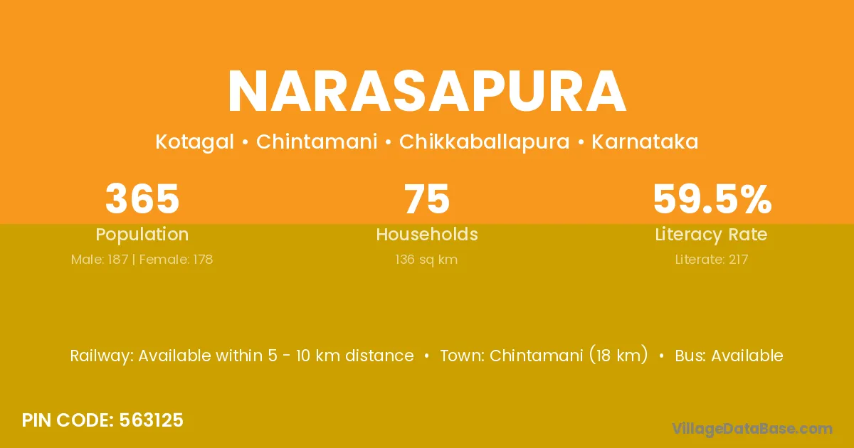 Siralkoppa (34 km) is the nearest town to Narasapura village for major economic activities and is located approximately 34 km away.