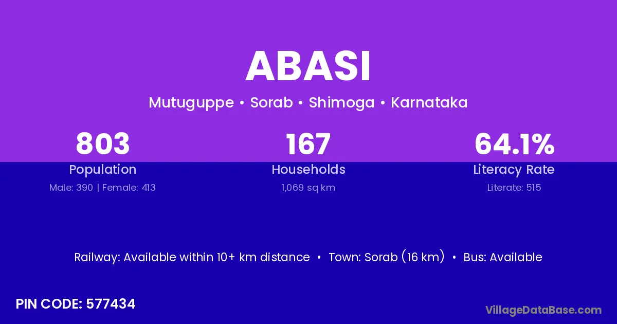 Abasi village is located in the Sorab Taluka of the Shimoga district in Karnataka .