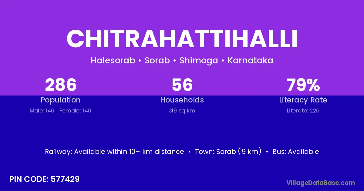 Chitrahattihalli village has a total population of 286 people, of which 146 are males and 140 are females.