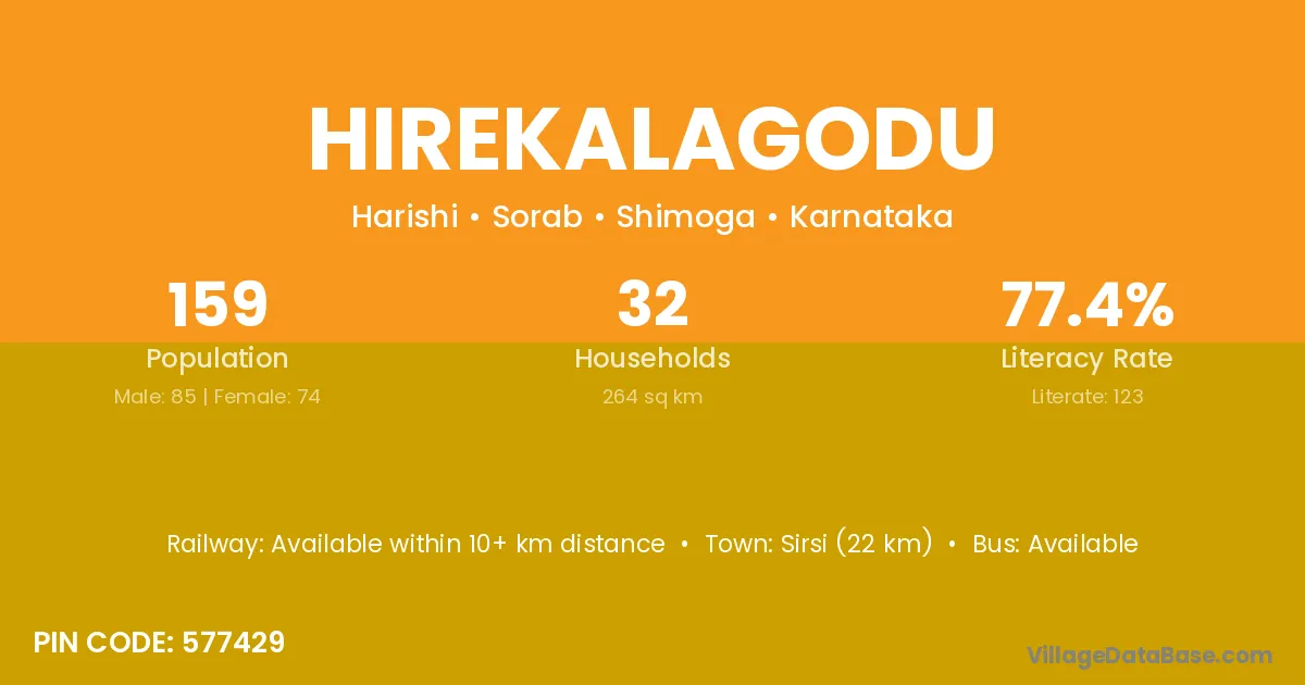 Sirsi (22 km) is the nearest town to Hirekalagodu village for major economic activities and is located approximately 22 km away.