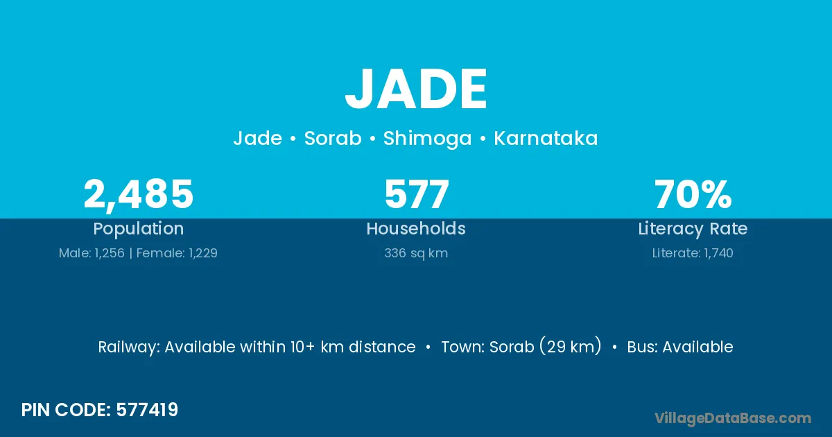 According to Census 2011 information, the village code of Jade village is 577419.