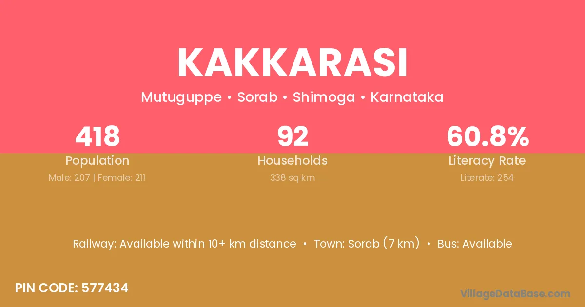 Kakkarasi village is located in the Sorab Taluka of the Shimoga district in Karnataka .