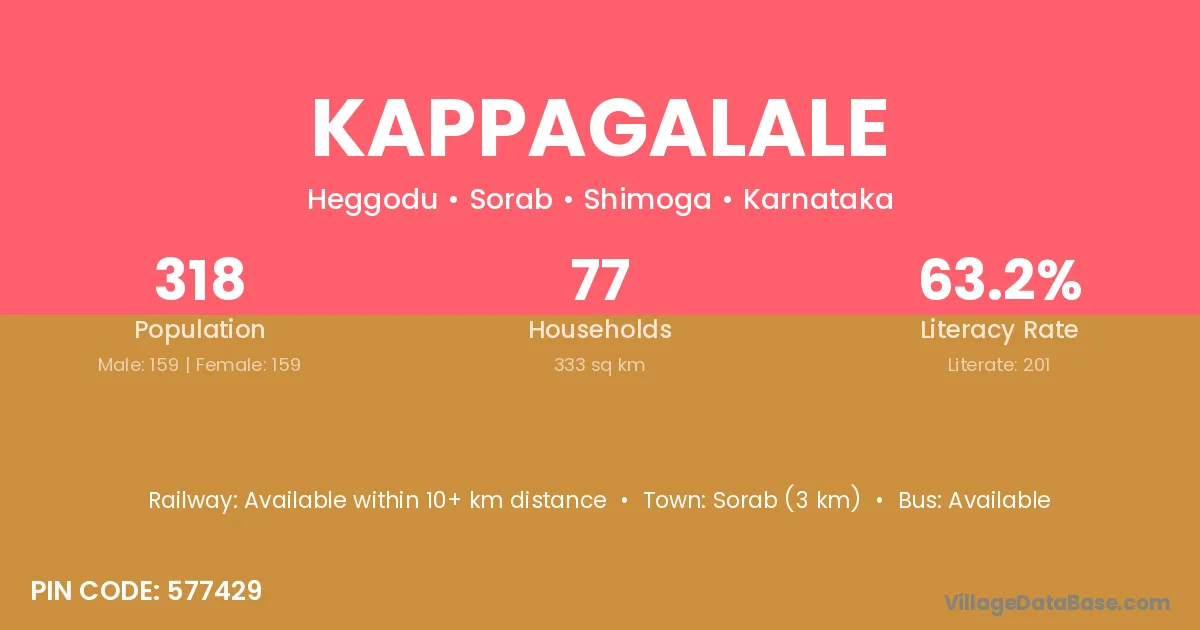 Kappagalale village has a total population of 318 people, of which 159 are males and 159 are females.