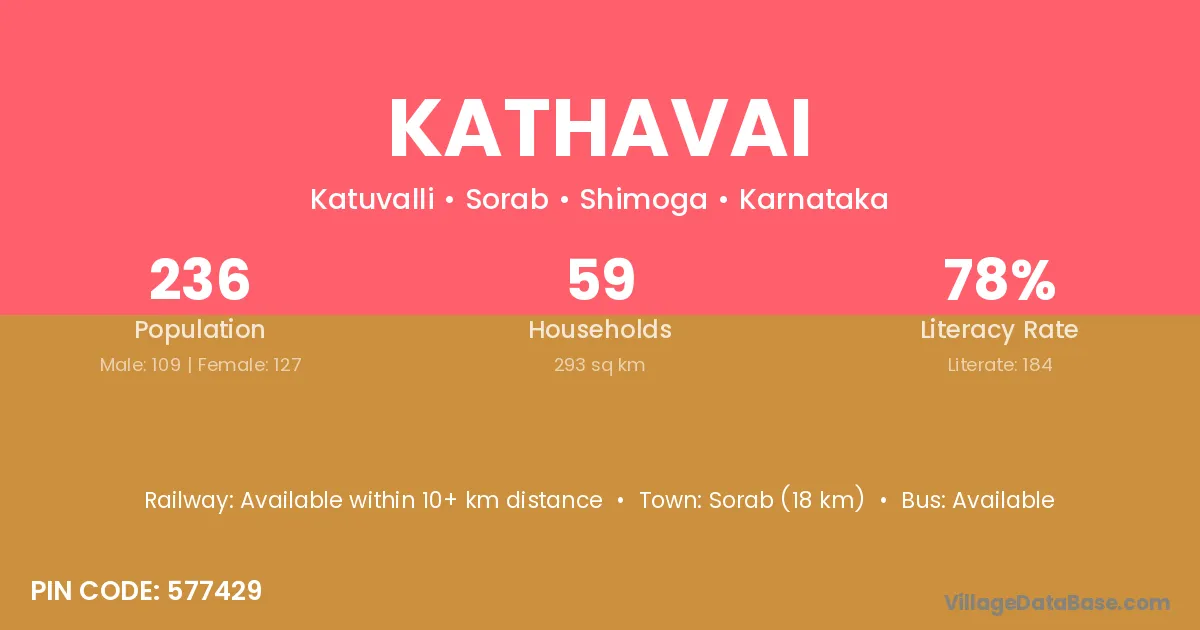 Sorab (18 km) is the nearest town to Kathavai village for major economic activities and is located approximately 18 km away.