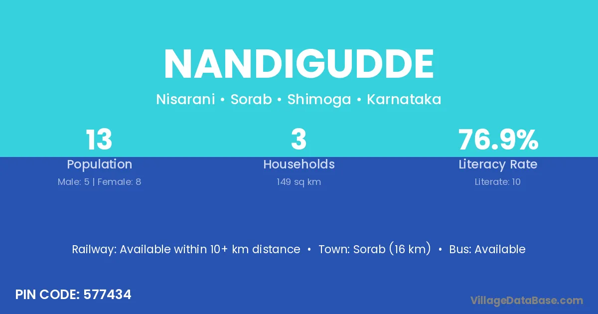 Nandigudde village has a total population of 13 people, of which 5 are males and 8 are females.