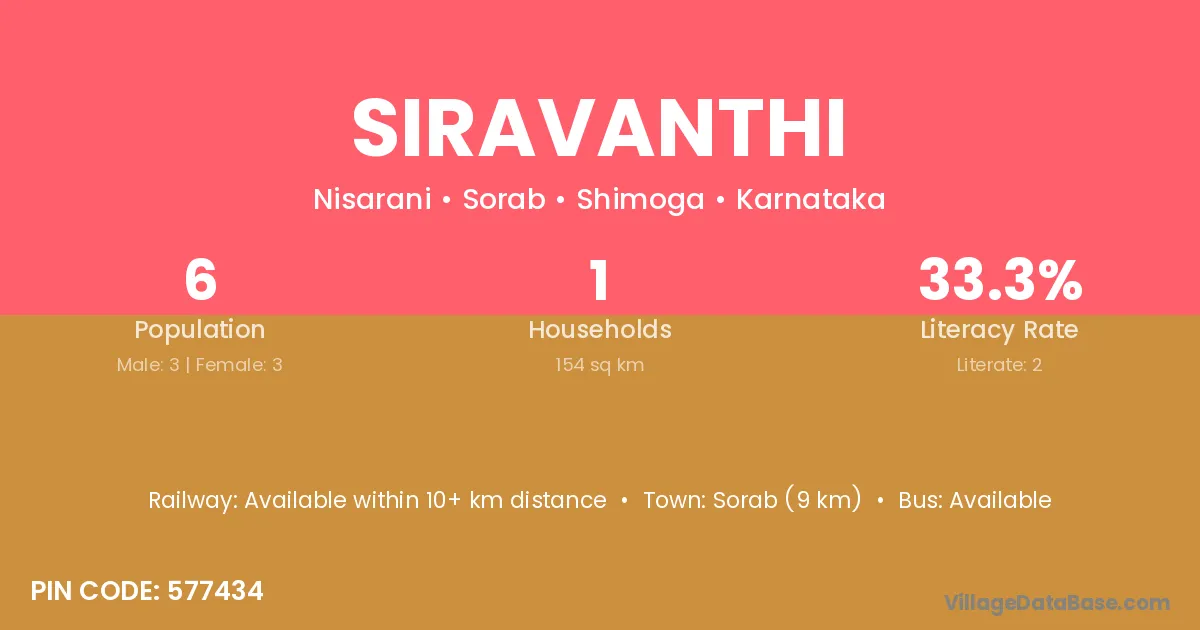 Siravanthi village has a total population of 6 people, of which 3 are males and 3 are females.