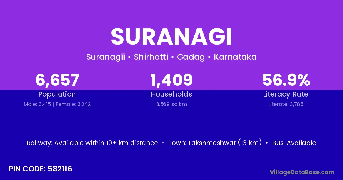 According to Census 2011 information, the village code of Suranagi village is 577419.