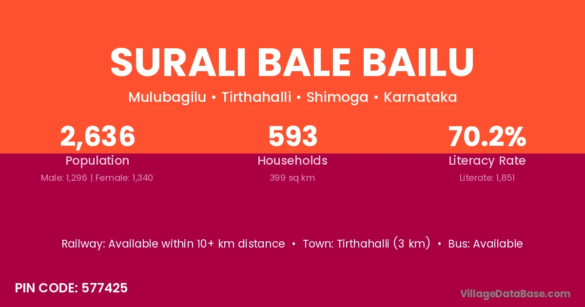 Tirthahalli (3 km) is the nearest town to Surali Bale Bailu village for major economic activities and is located approximately 3 km away.