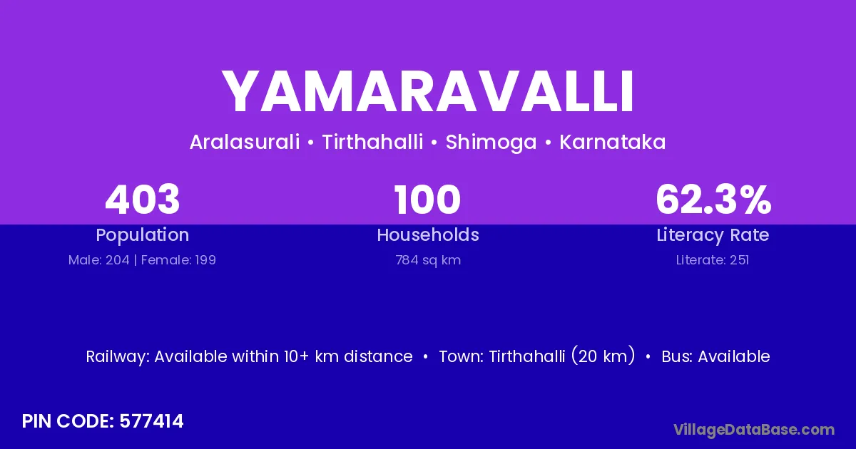 Tirthahalli (20 km) is the nearest town to Yamaravalli village for major economic activities and is located approximately 20 km away.