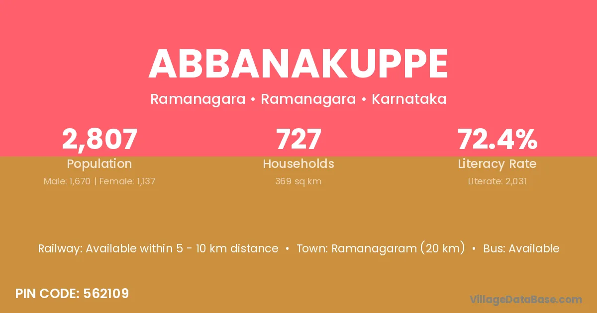 Kunigal (18 km) is the nearest town to Abbanakuppe village for major economic activities and is located approximately 18 km away.