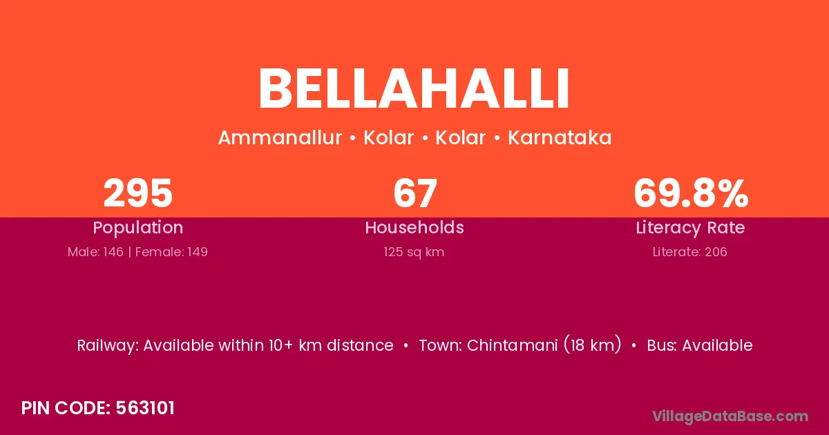 Gubbi (24 km) is the nearest town to Bellahalli village for major economic activities and is located approximately 24 km away.