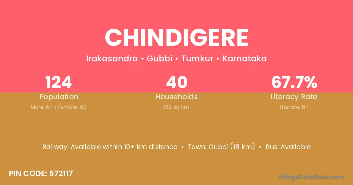 Chindigere village has a total population of 124 people, of which 64 are males and 60 are females.