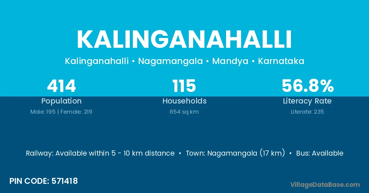 Sira (23 km) is the nearest town to Kalinganahalli village for major economic activities and is located approximately 23 km away.