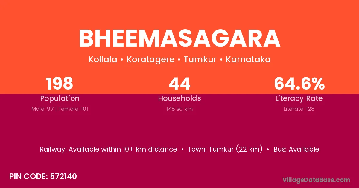 Bheemasagara village has a total population of 198 people, of which 97 are males and 101 are females.