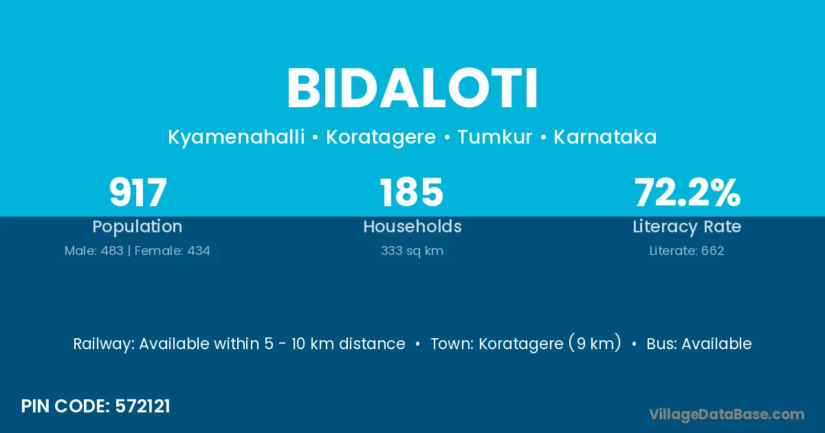 Koratagere (9 km) is the nearest town to Bidaloti village for major economic activities and is located approximately 9 km away.