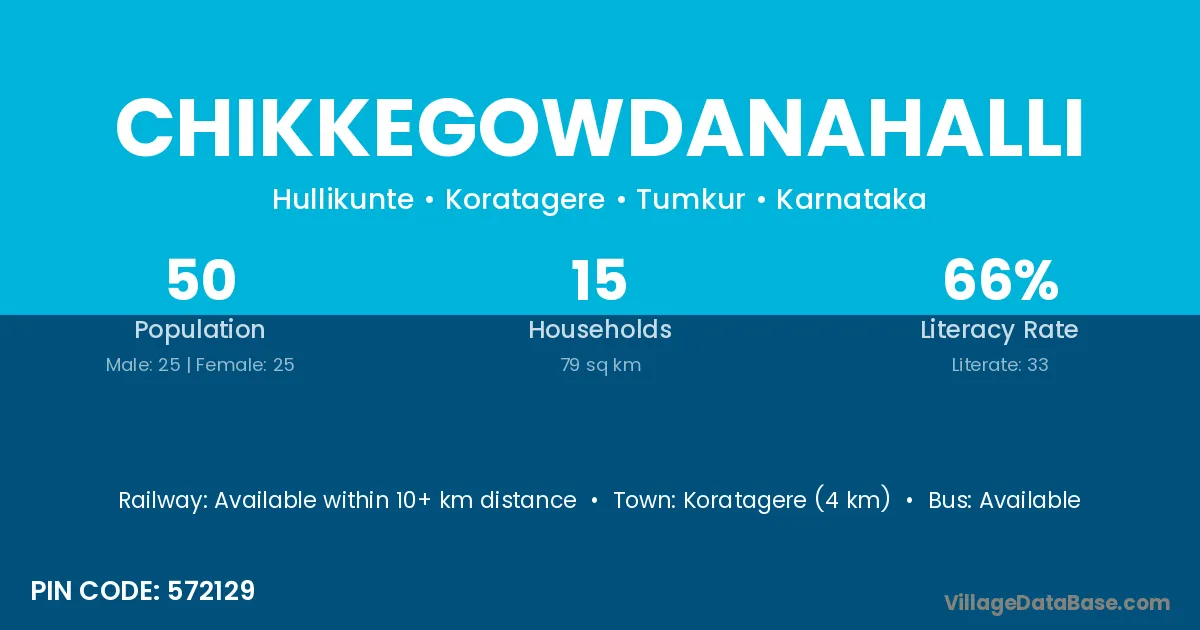 Koratagere (4 km) is the nearest town to Chikkegowdanahalli village for major economic activities and is located approximately 4 km away.