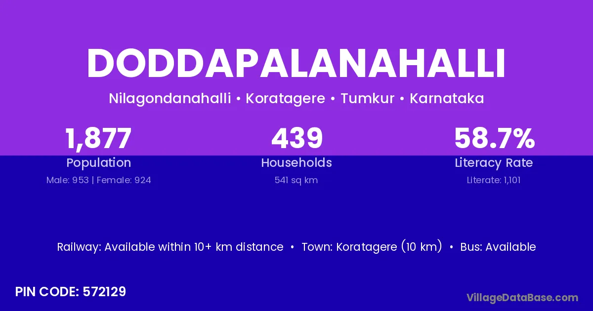 Koratagere (10 km) is the nearest town to Doddapalanahalli village for major economic activities and is located approximately 10 km away.