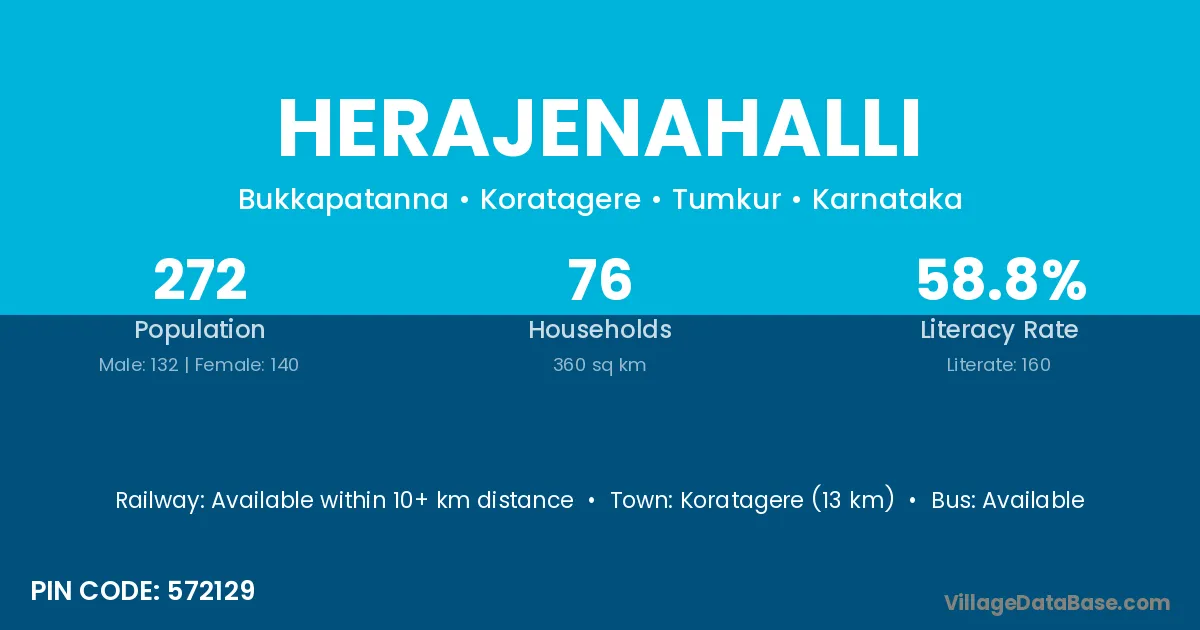 Herajenahalli village has a total population of 272 people, of which 132 are males and 140 are females.