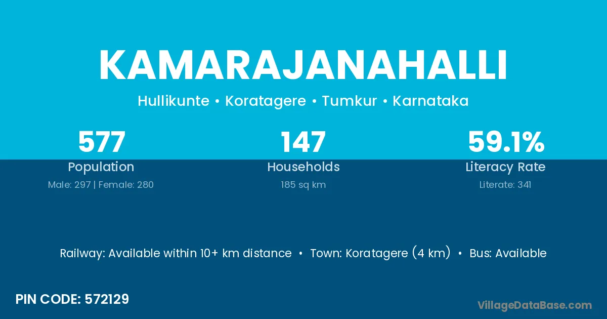 Koratagere (4 km) is the nearest town to Kamarajanahalli village for major economic activities and is located approximately 4 km away.